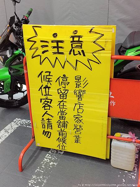 排隊的人潮多到店家需要用告示牌來提醒排隊的人,不要醒想到隔壁店家